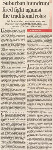 Newspaper article about changes to the role of women between 1970 and 1995.