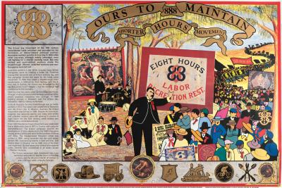 A poster comemorating the history of the eight hours movement in Australia.