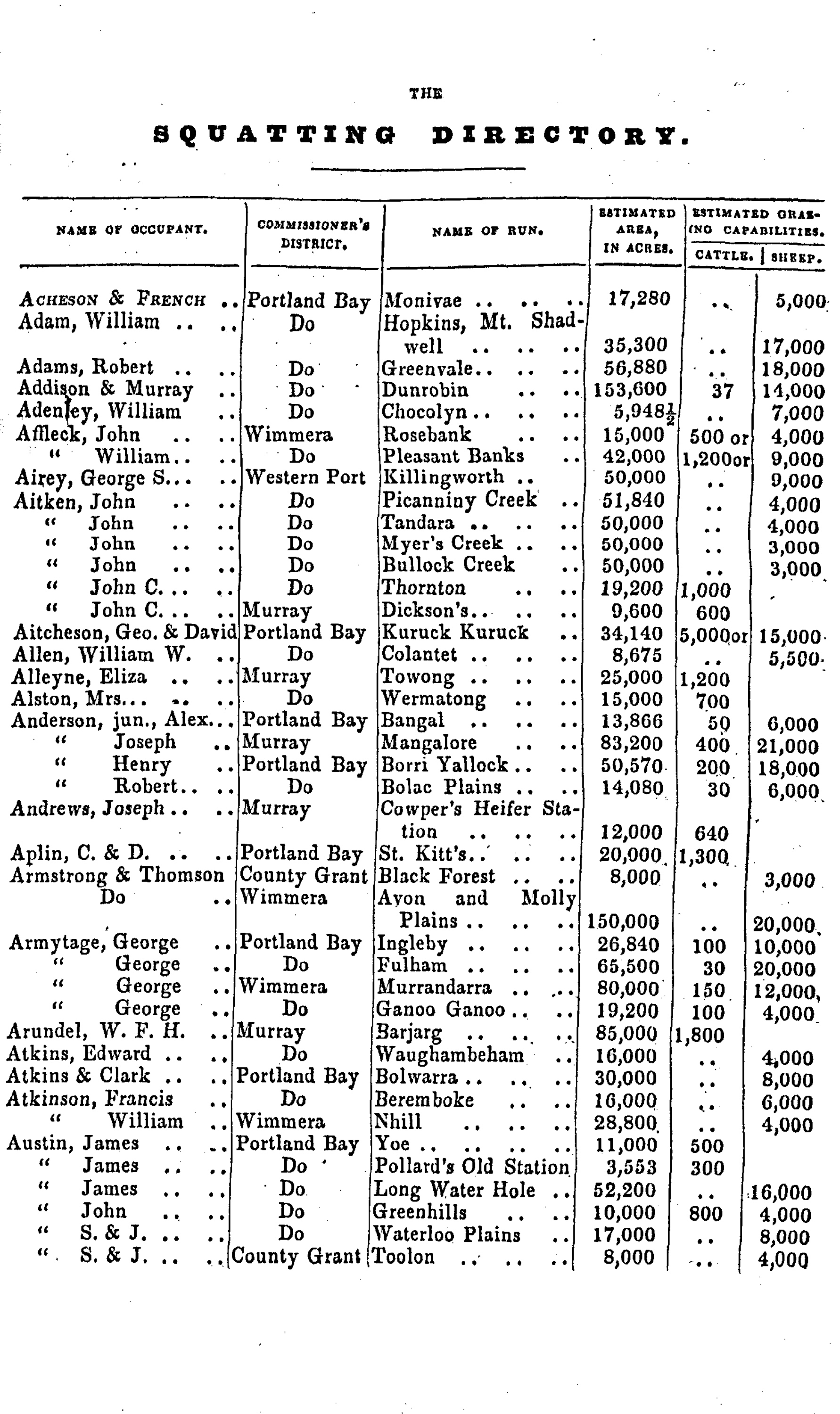 Alphabetical list of occupants of crown land, compiled from the Government Gazette.