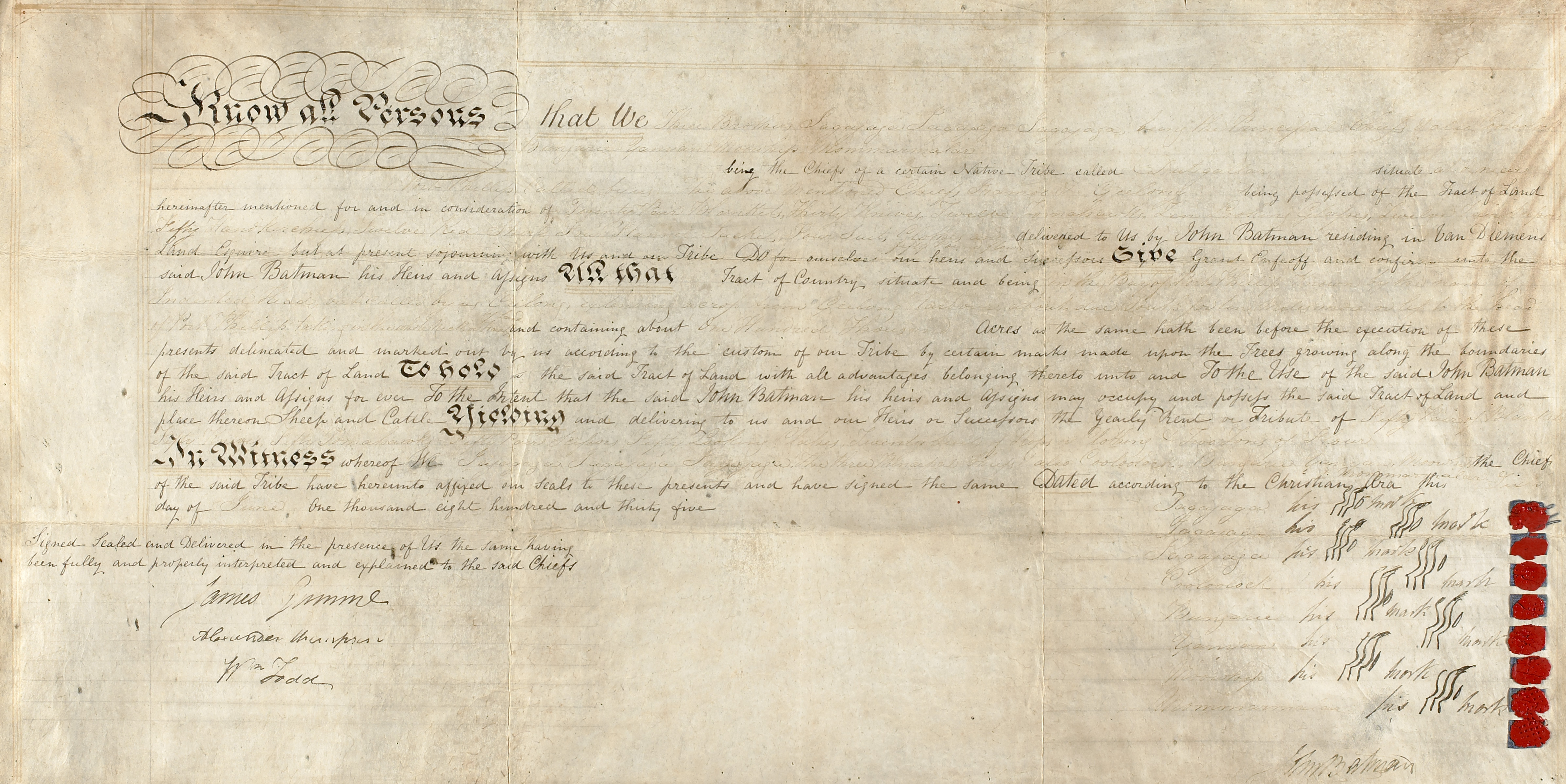 Reproduction of the original manuscript of John Batman's treaty with the Wurundjeri Aborigines.