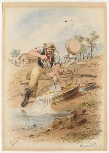 S.T Gill painted a number of works that showed gold mining techniques used by diggers on the fields.