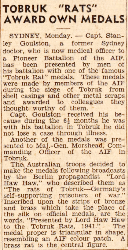 Sometimes a word meant to condemn can become a badge of pride. When German propaganda called the soldiers in Tobruk 'rats', they adopted the name and even made their own 'rat' medals. 'Lord Haw Haw' was William Joyce, an Irish-American who sided with the Nazis and broadcast English-language propaganda. After the war he was tried for treason and hanged.