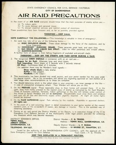 Early in the war, the threat of air raids was taken seriously, even in cities as far south as Melbourne. As it turned out, Darwin, in the far North, was the only Australian city ever subjected to an air-raid.