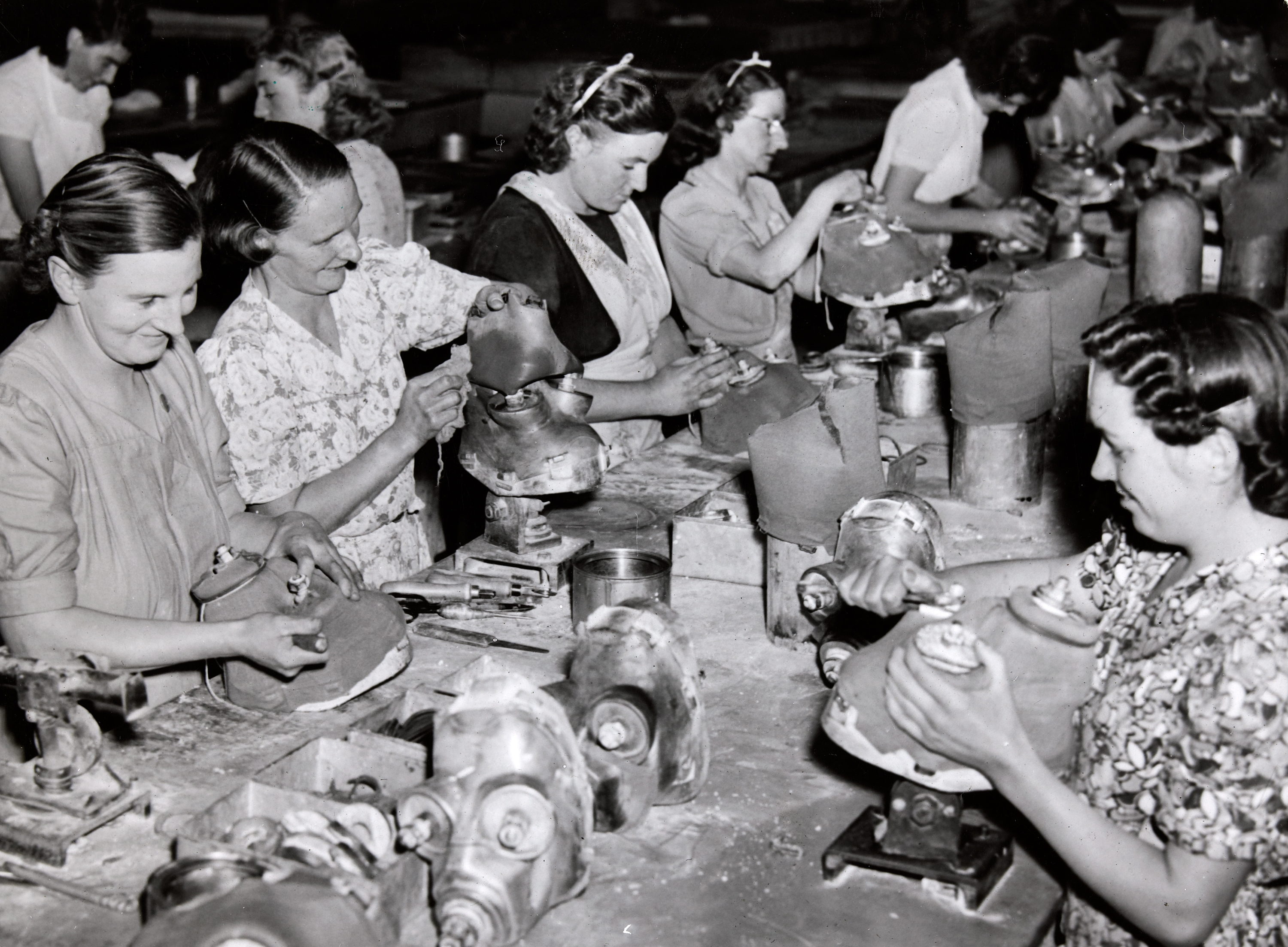 Women stepped into the factory jobs left behind by the men who had gone to war and Industries were re-tooled to manufacture wartime equipment. Fortunately, these gas masks were never needed. Although both the Germans and Americans developed battlefield gas weapons, none of them were used in World War 2.