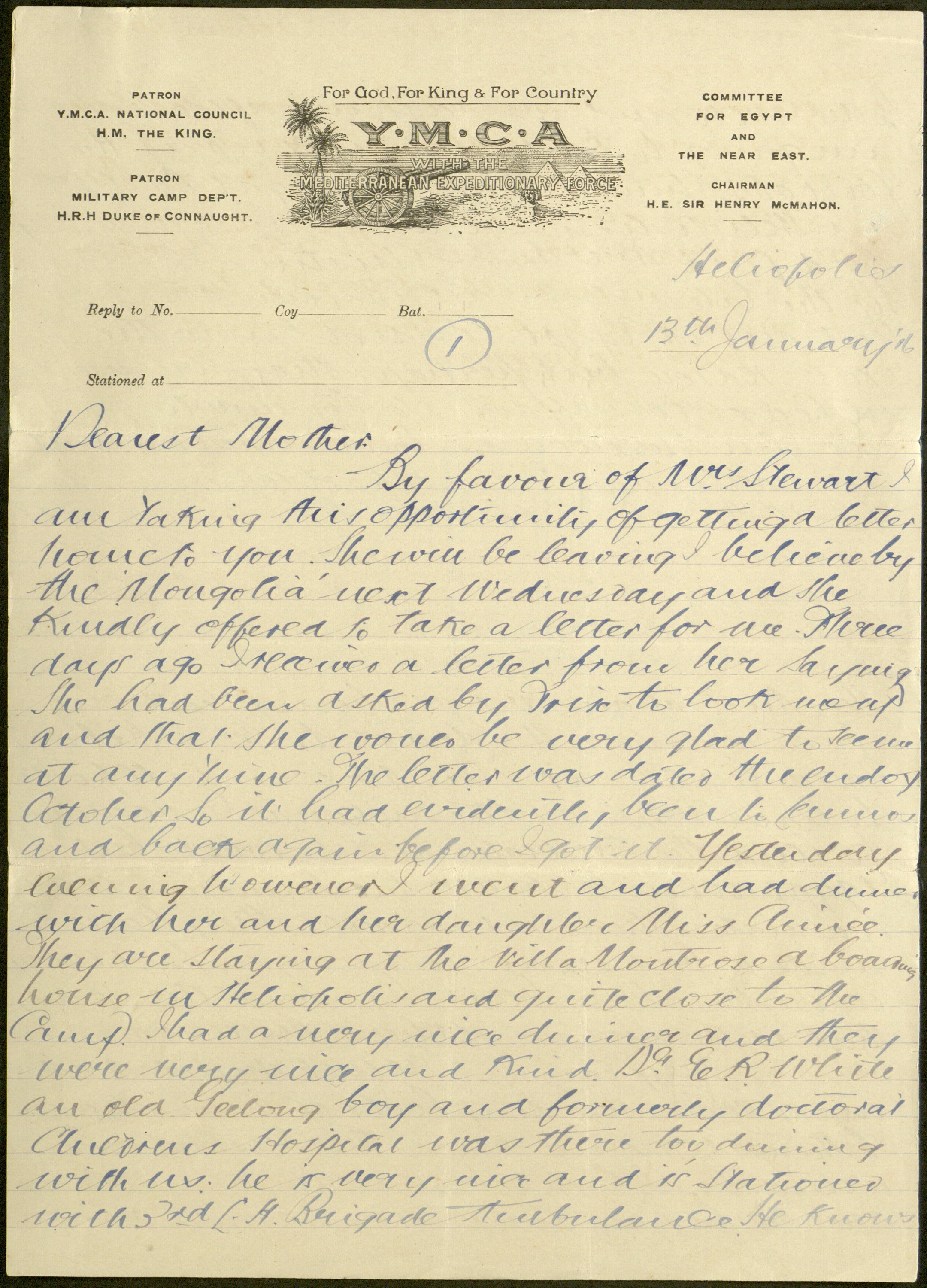 ...The feeling between the Australians and English is very bad. I think there is no doubt that the English on two or three occasions at the Peninsula showed the white feather and ran away. From all accounts they were very raw troops and should never have been sent. There are several other incidents which have served to increase the bad feeling, and there is no love lost I can assure you. It is a very unfortunate state of affairs. On the other hand the best feeling possible reigns between the Navy and the Australians.