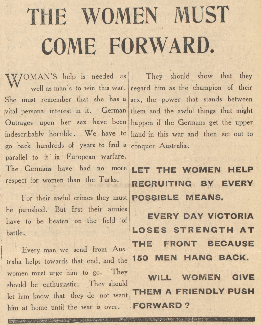 An advertisement in a regional newspaper stressing the role of women in helping recruitment drives.