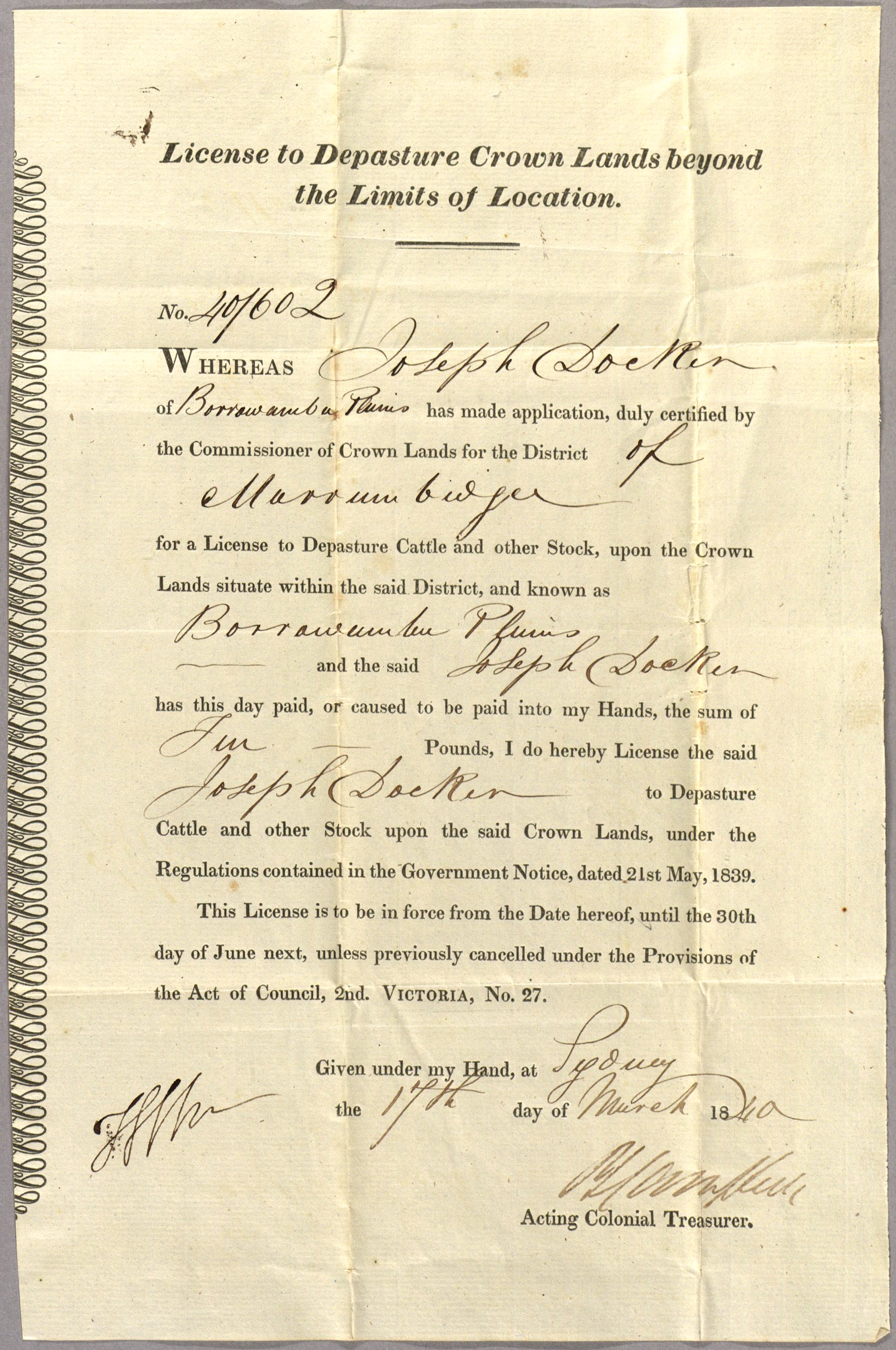 Licence to depasture on Crown Lands beyond the limits of location, etc., 1840