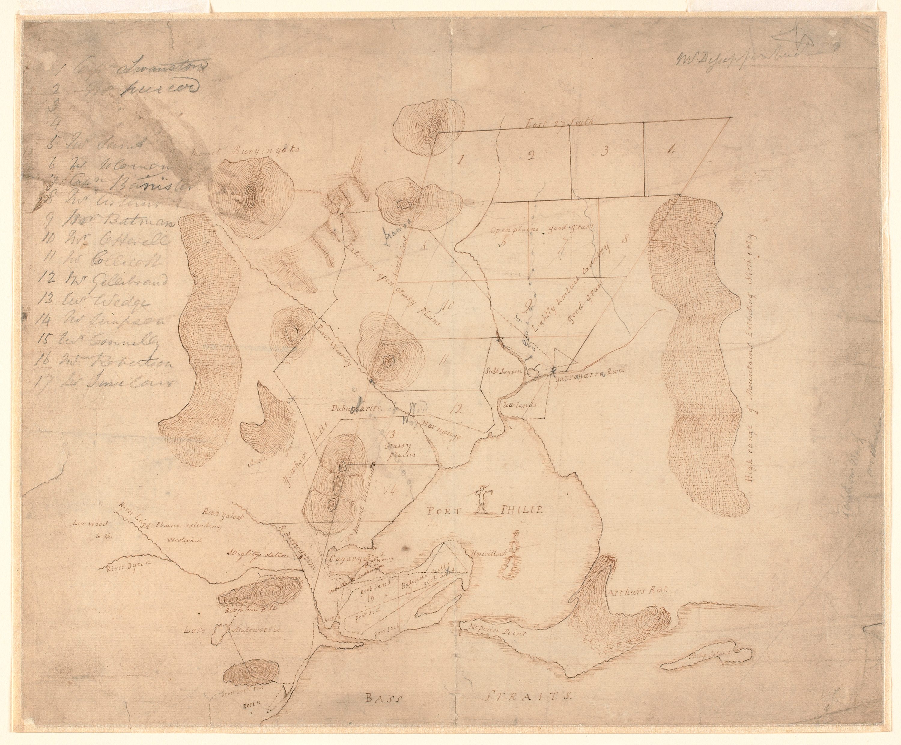 This map shows the proposed division of 600,000 acres of land, including the sites of Melbourne and Geelong, among members of the Port Phillip Association as a consequence of the treaties negotiated by John Batman with the Aboriginal people of the area in June 1835.