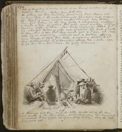 The surviving diaries and letters written by the goldminers frequently describe the conditions and experiences of the goldfields. Here, Snell describes the aftermath of a fierce storm, and the ways in which his company passed their time, when prevented from working the mines.