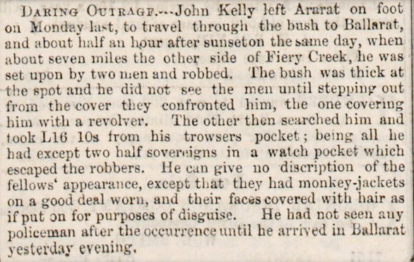 There was a constant flow of people to, and from, the various goldfields and travellers were vulnerable to attacks by bushrangers and petty criminals.