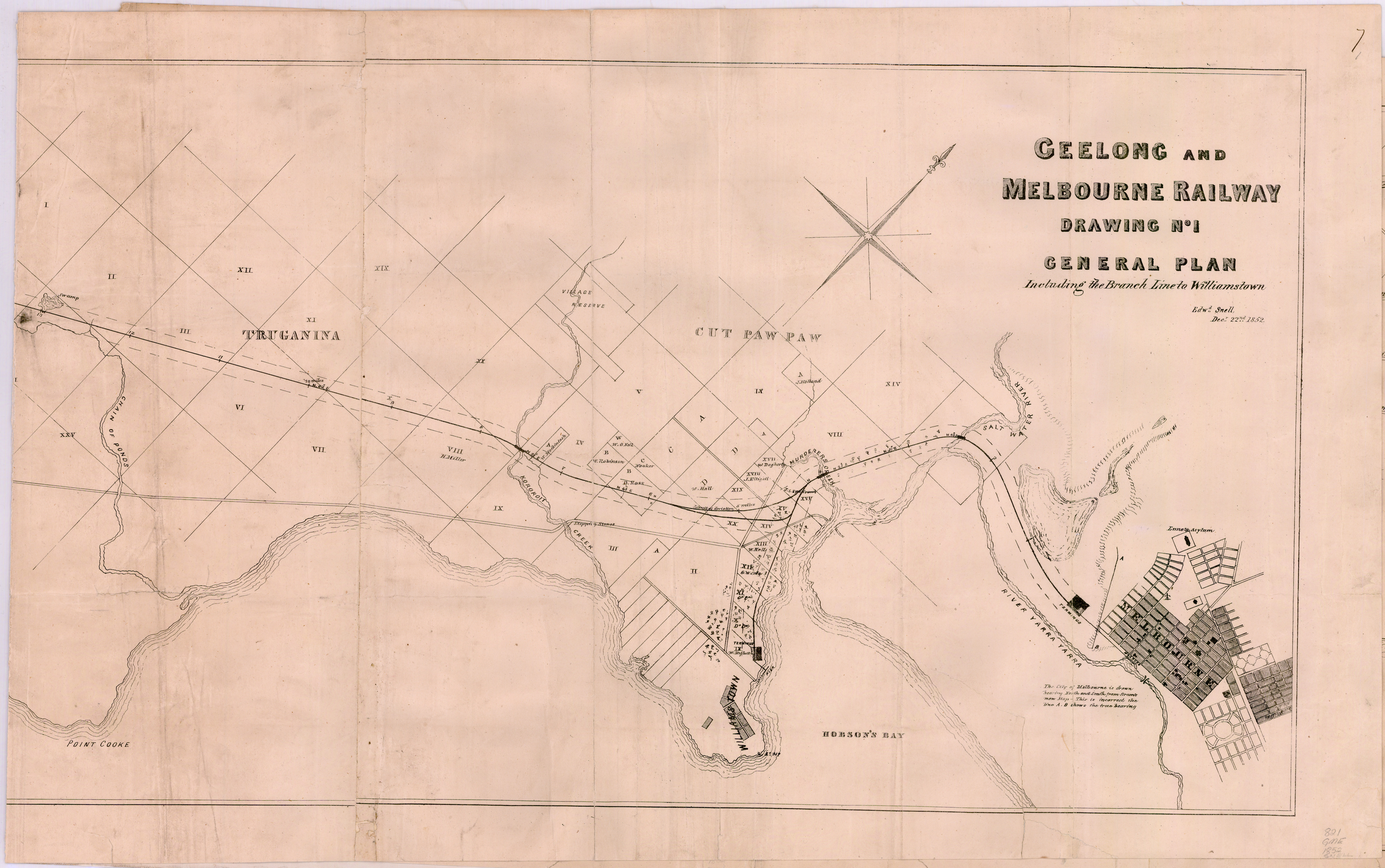 Geelong and Melbourne railway drawing No 1. general plan : including the branch line to Williamstown