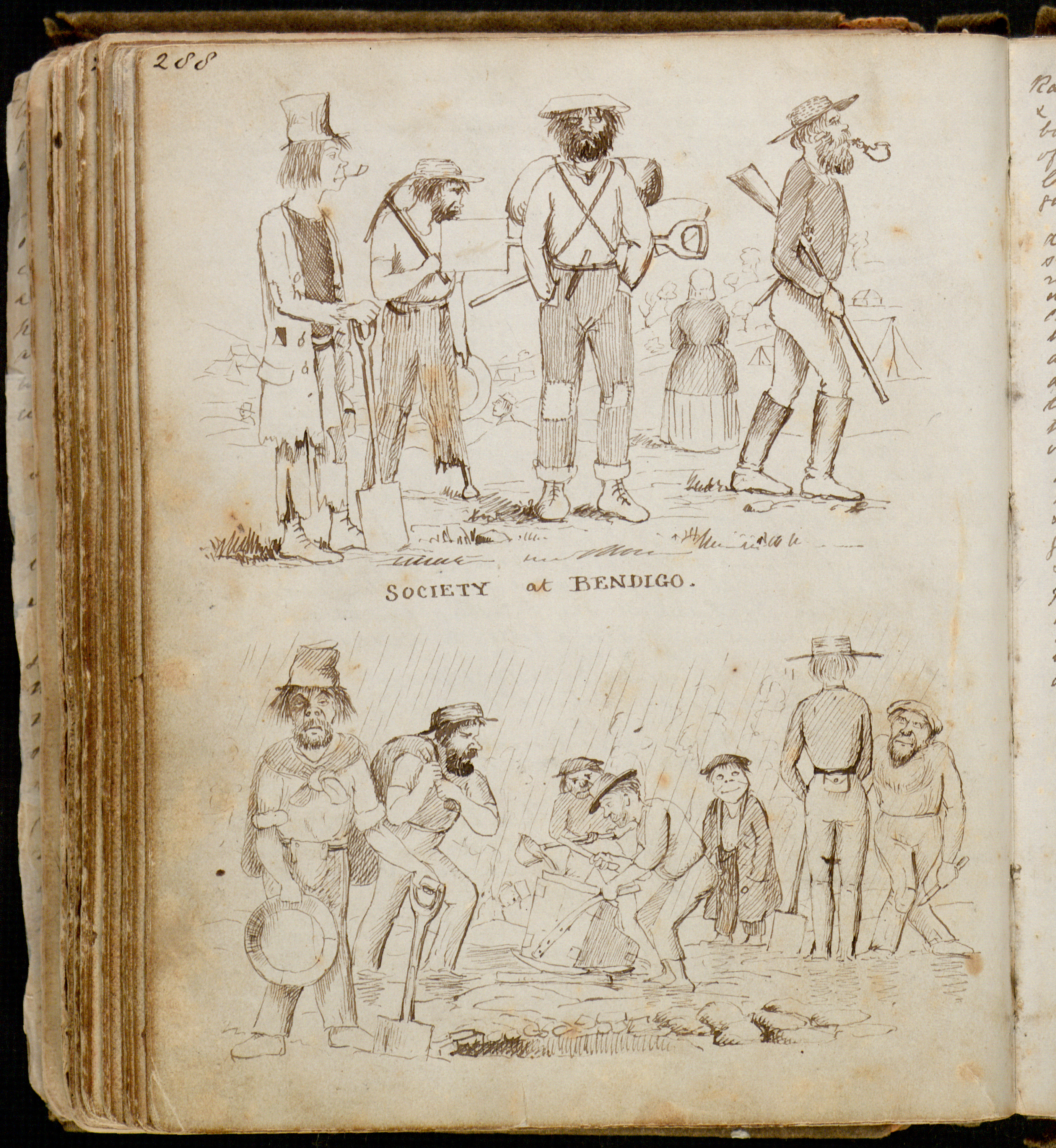 One of Snell's many humorous illustrations, revealing the variety of characters he observed at the Bendigo diggings.