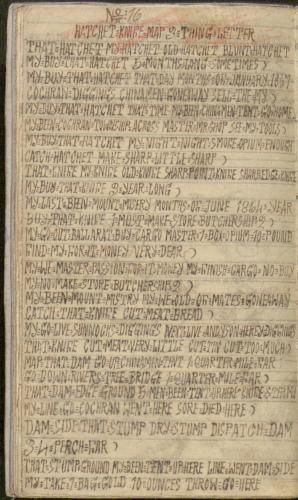 See the dam on the map; it is about a quarter mile from the Chinamen's tents. It is a quarter of a mile to the log over the river which was used as a bridge. The ground at the edge of the dam is where the 5 men from the tents came up and stabbed me with a knife. My route when I was going to Cochrane's came by the dam and I was hurt and fainted there. The stump by the dam is a dry stump about 3 or 4 perches from the dam. I threw a bag containing 10 ounces of gold on the ground near the stump."