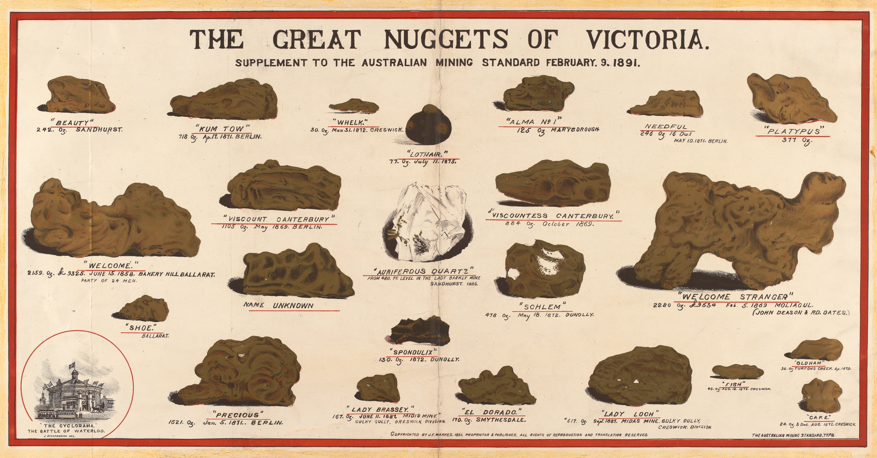 J. Richardson, artist. Lithographed by Troedel & Co. Produced as a supplement to the Australian Mining Standard, February 9, 1891.