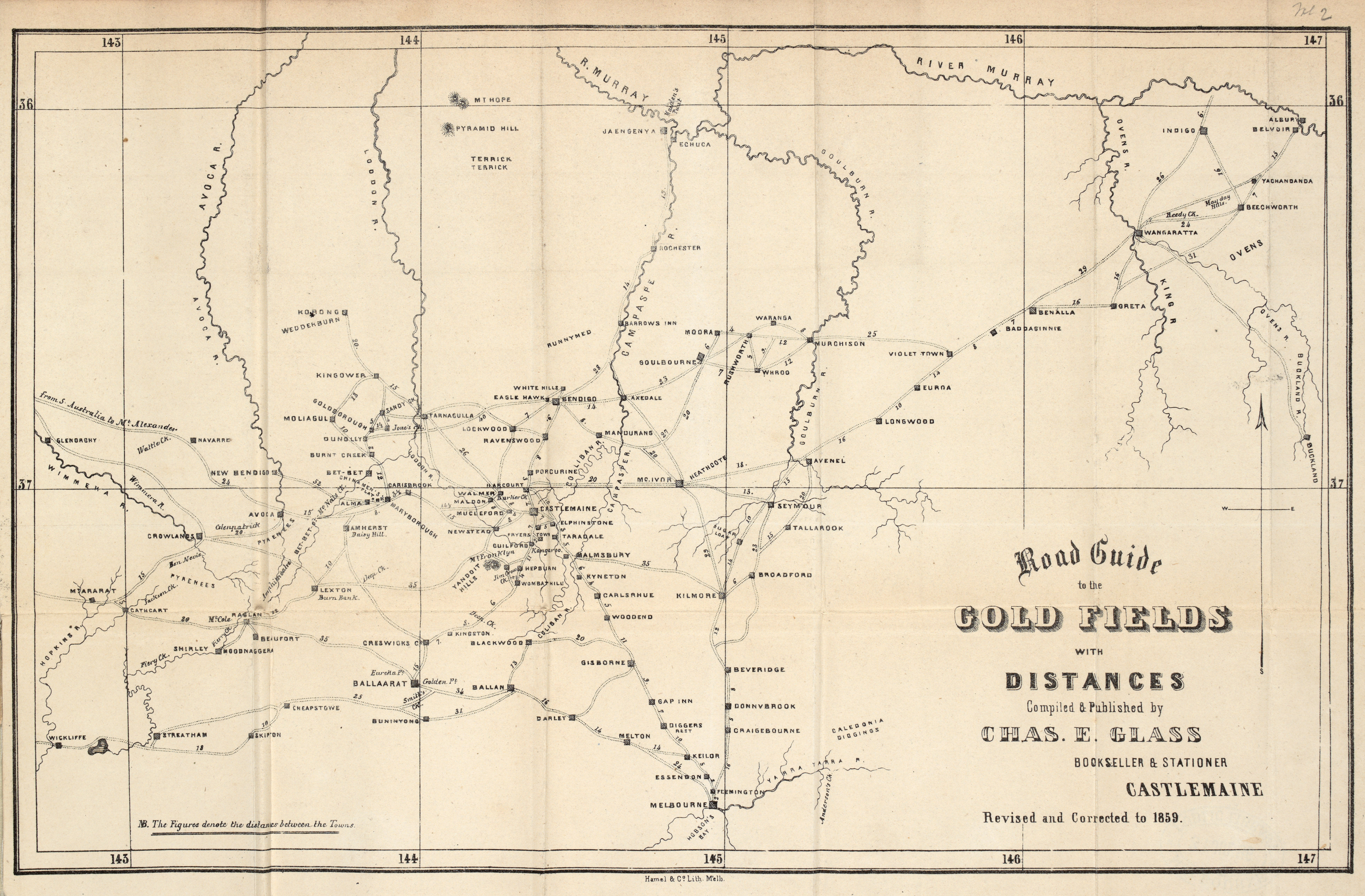 Road Guide to the Gold Fields, published in Glass's Miner's companion for 1859.