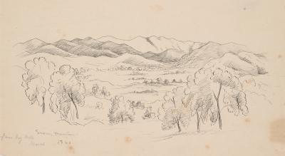 Hand-drawn landscape sketch showing the ranges between Omeo and Woods Point.