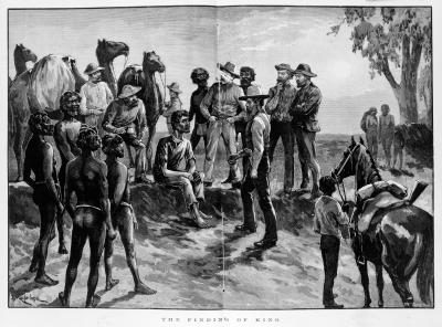 Member's of Howitt's relief expedition finding John King, last survivor of the Burke and Wills expedition. This engraving was prepared for a special supplement to the Illustrated Australian News on the topic of exploration.
