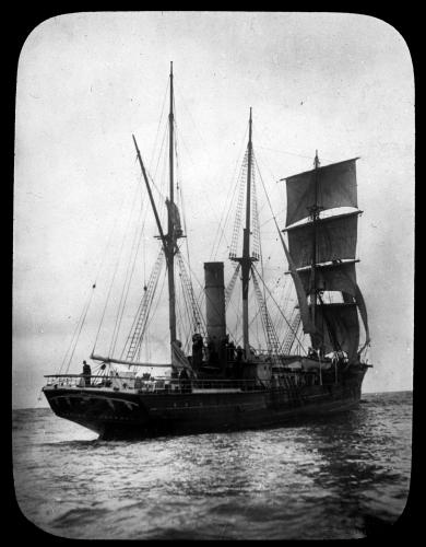 This photo of the Aurora clearly shows both her steam engine smokestack and sails.