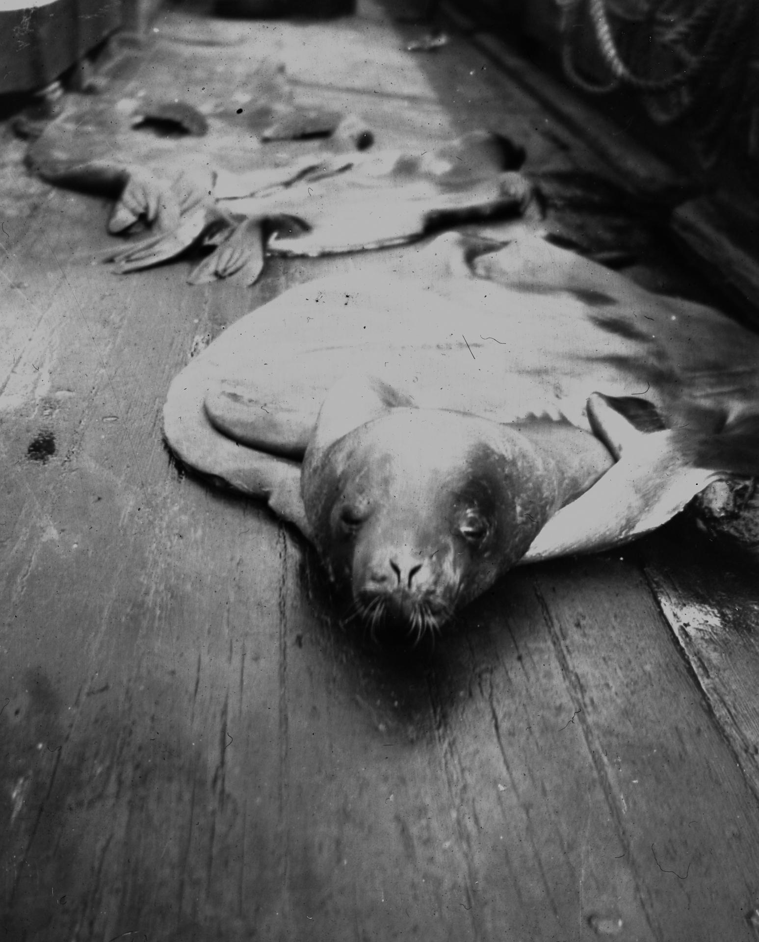 Seal skins on ship deck