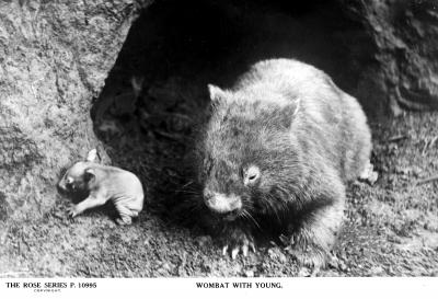 Wombat with young wombat