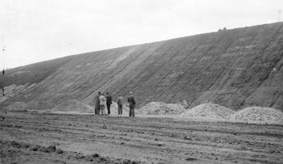 This photo shows a Krilium experiment at Yallourn open cut mine, Yallourn, Victoria. Krilium was a brand name for polyacrylamide, an additive used to bond soil particles together and reduce soil runoff.