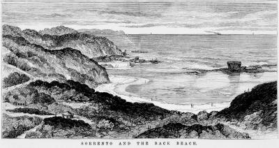 Sorrento Bay and beach in detail. This engraving was first published in The illustrated Australian news.
