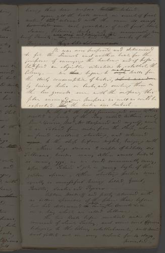 Reproduction of Third Lieutenant Nicholas Pateshall's original diary entry, which includes the passage 'we began to make wells for the daily consumption of water.'