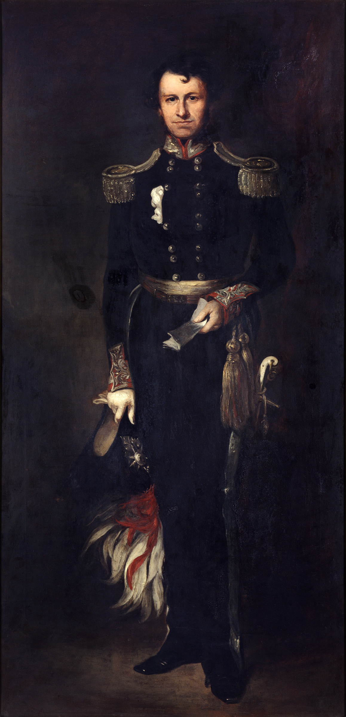 Portrait of Charles Joseph La Trobe, standing in uniform.