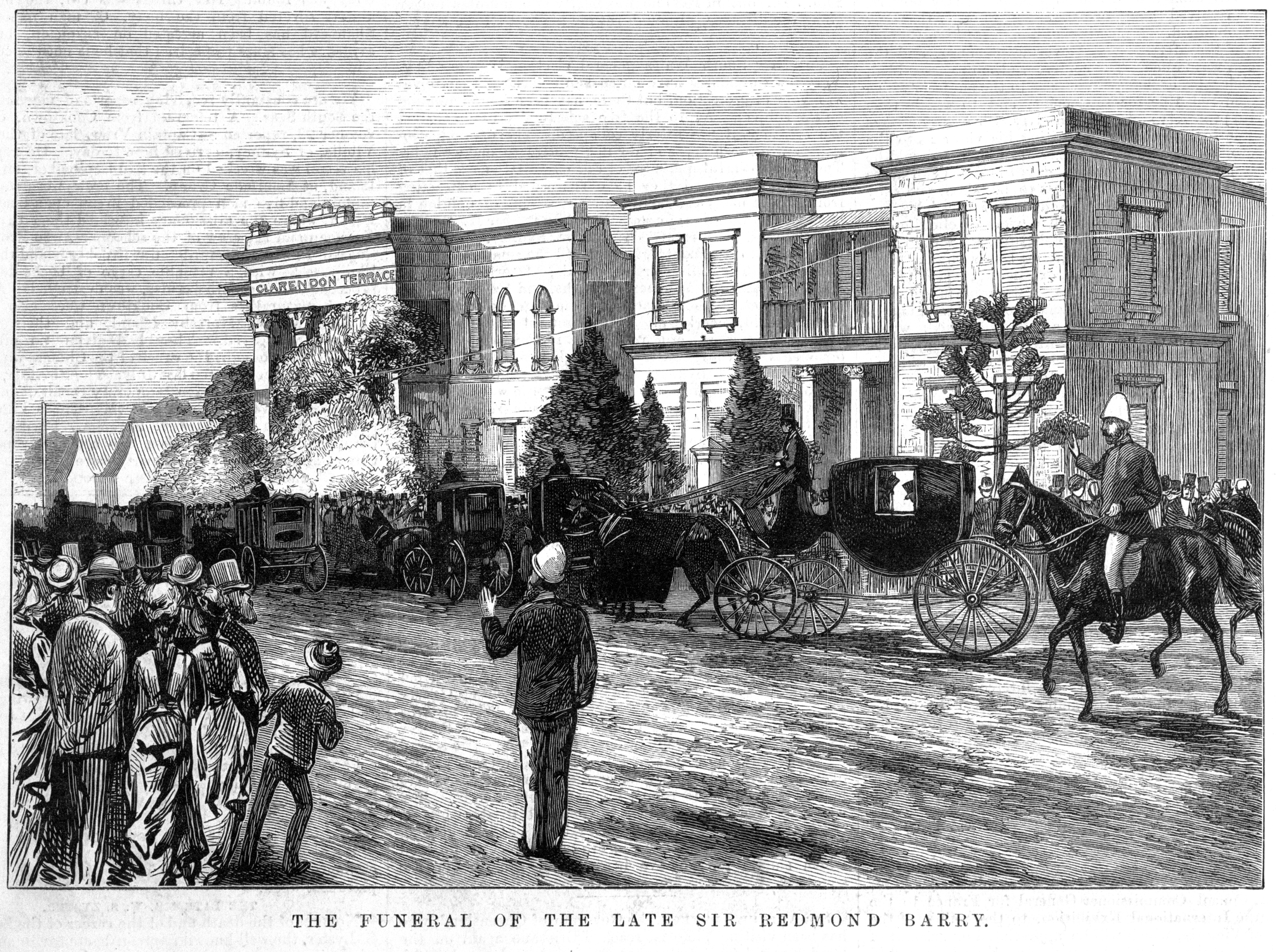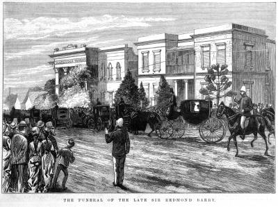This engraving of Sir Redmond Barry's funeral procession was published in The Australasian sketcher.