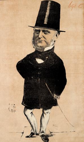 Newspaper caricature of Redmond Barry from The Weekly Times. Accompanying text reads 'An Acting Chief Justice. O Wise and Upright Judge'.