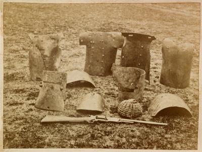 Parts of two suits of armour worn by the Kelly gang in the siege, and Ned Kelly's rifle.