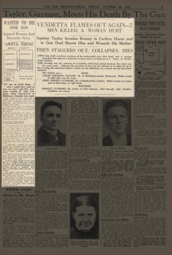 Newspaper article describing the events at a house in Carlton, where Squizzy Taylor and John 'Snowy' Cutmore had a shoot out.