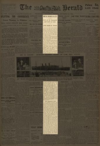 Newspaper article from the Herald dated 31 December 1921 reporting the murder of 12-year-old Alma Tirtschke in one of Melbourne's laneways, known as Gun Alley.