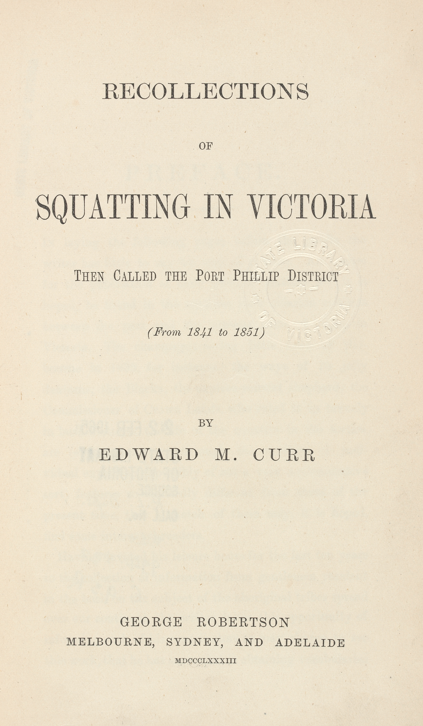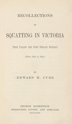Edward Curr's published observations from his life as a squatter, which would go on to play a curious part in the Yorta Yorta Native Title claim.